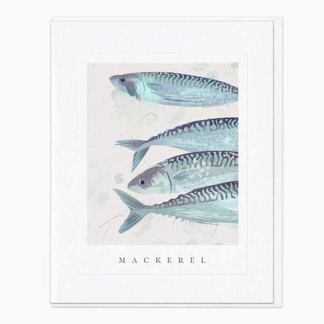 This serene card from the Seagrass Collection highlights the rhythmic grace of mackerel gliding through the waves. Its cool tones and gentle details echo the peaceful flow of the sea.